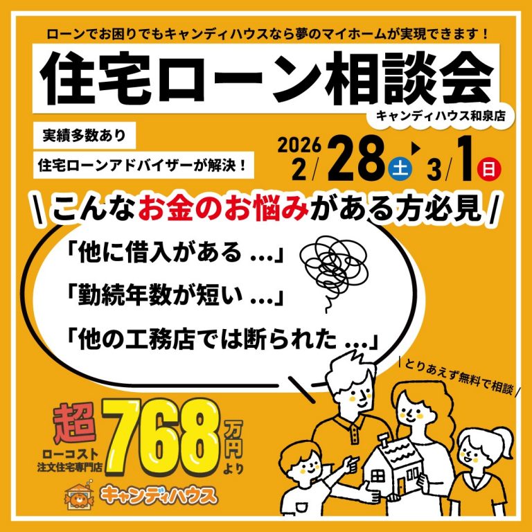 【住宅ローンが不安な方へ】住宅ローン相談会 キャンディハウス貝塚店