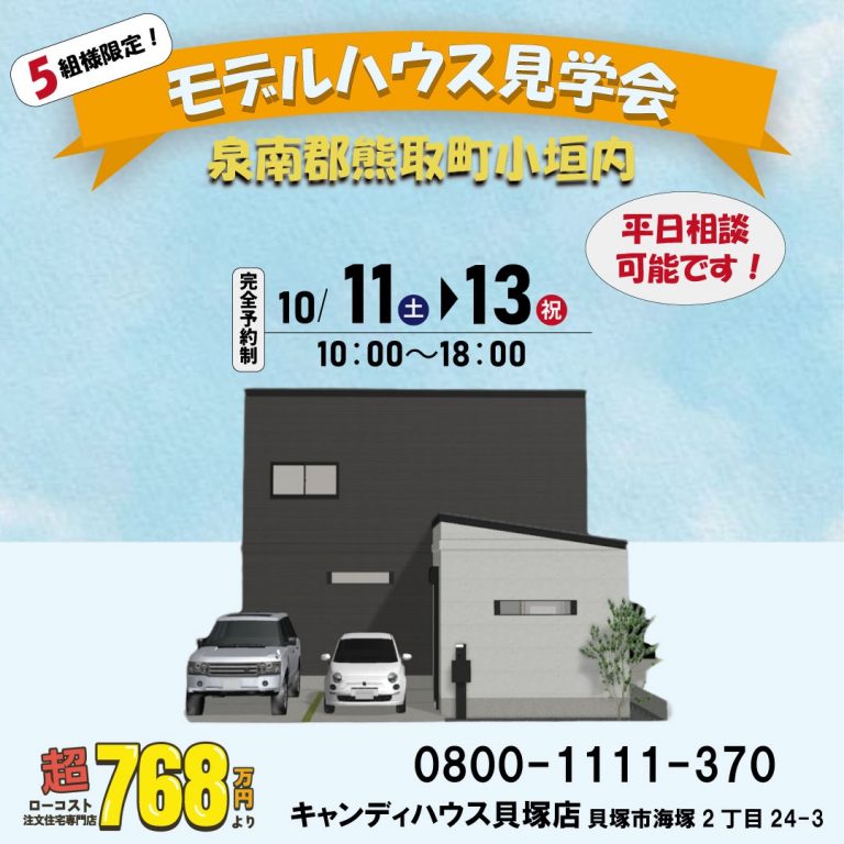 2025年10月11日(土)~13日(祝) 泉南郡熊取町小垣内☆モデルハウス見学会