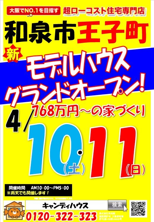 2021年4月10日(土)、11日(日) 和泉市王子町 モデルハウス グランドオープン!