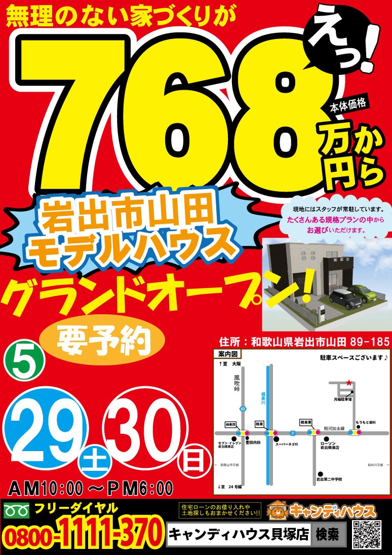 2021年5月29日(土),30日(日) 岩出市モデルハウス☆★オープン★☆