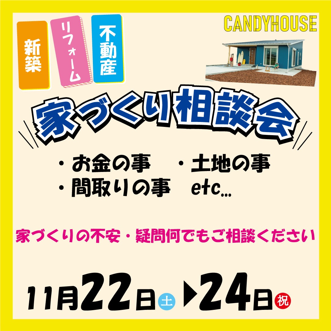 キャンディハウス貝塚店で「家づくり相談会」【11月22日(土)~24日(祝)】開催します!