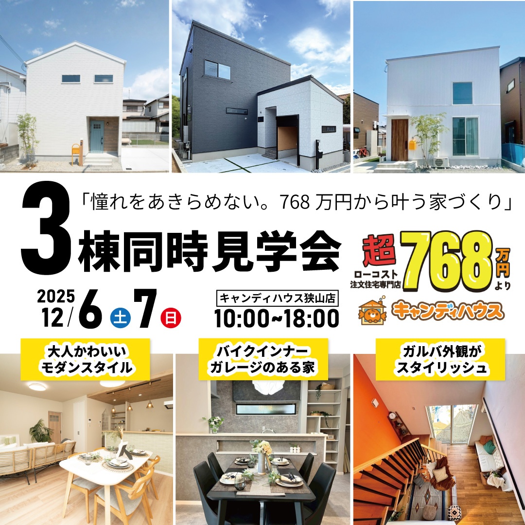 2025年12月6日(土),7日(日) 大阪狭山店★3棟同時モデルハウス見学会開催!!