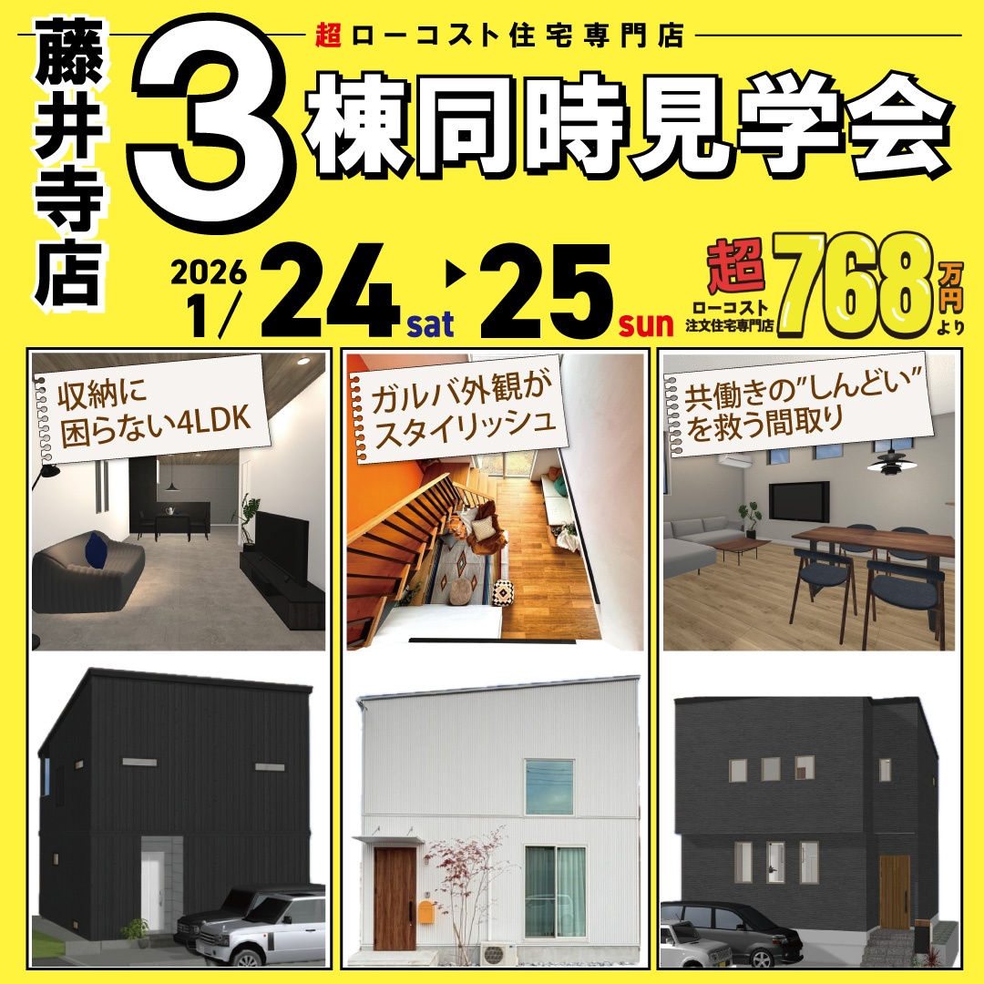 2026年1月24日(土),25日(日) 藤井寺店★3棟同時モデルハウス見学会開催!!