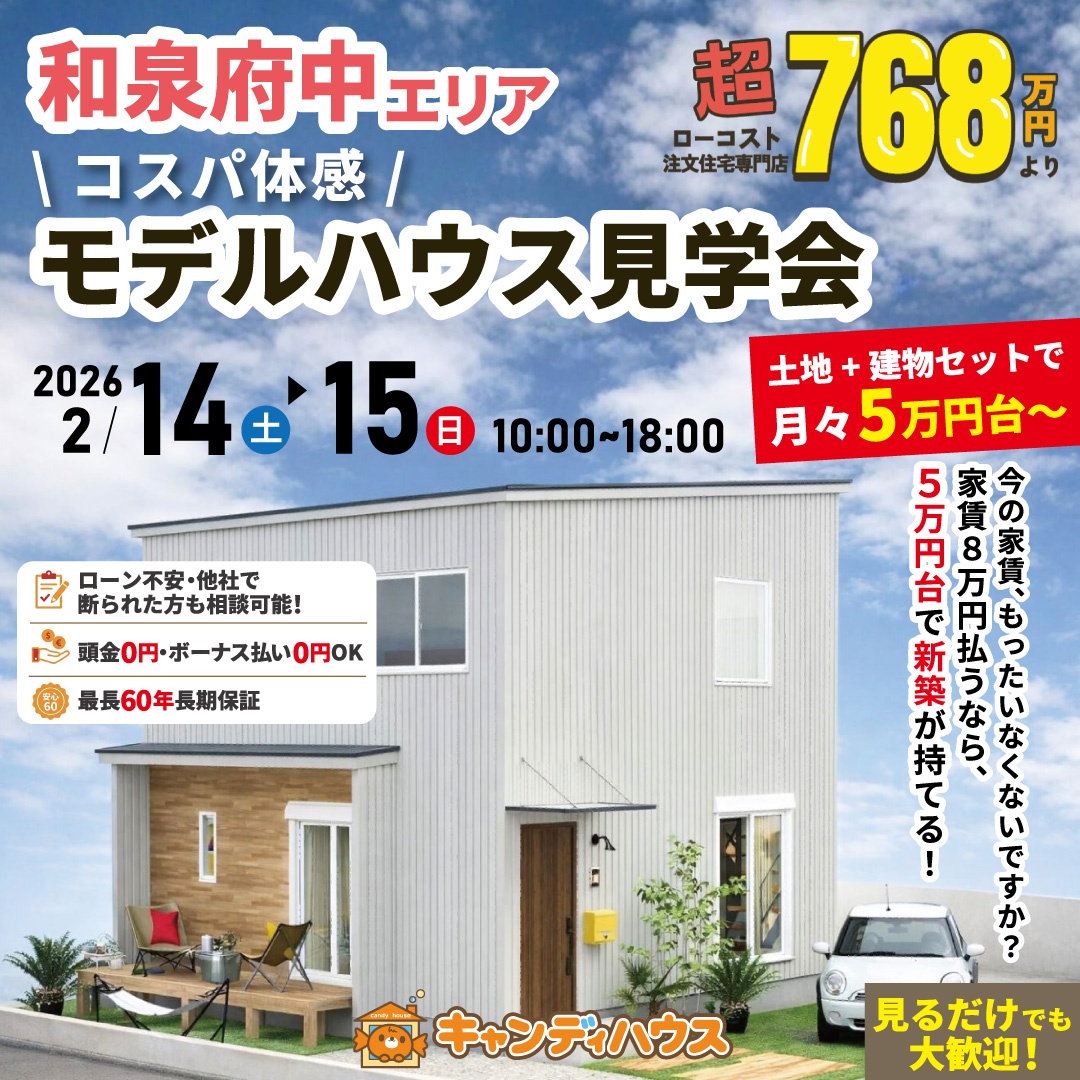 2026年2月14日(土),15日(日) 和泉府中エリア★モデルハウス オープン!!