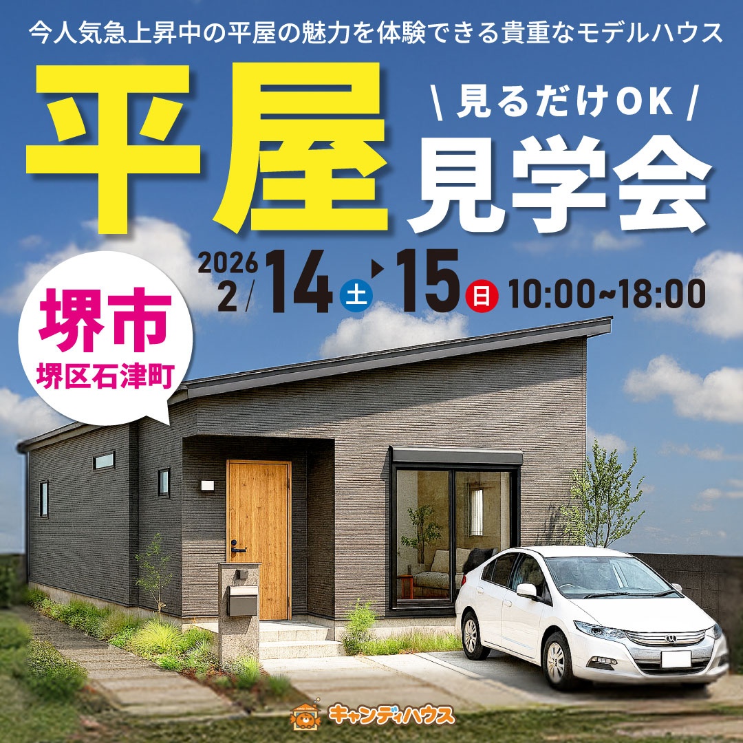 2026年2月14日(土),15日(日) 堺市堺区石津町★平屋モデルハウス グランドオープン!! ※要予約