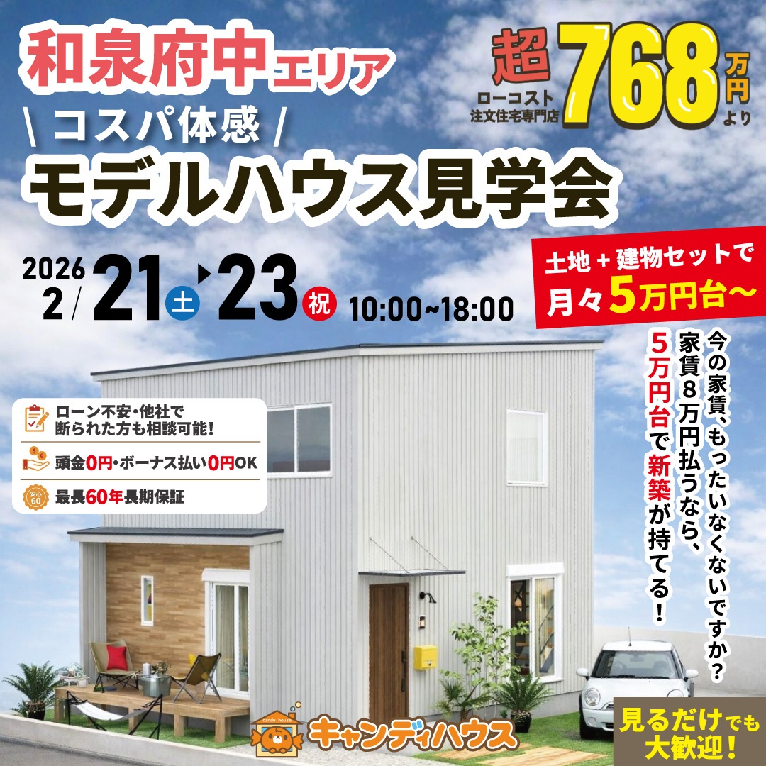 2026年2月21日(土)~23日(祝) 和泉府中エリア★モデルハウス オープン!!