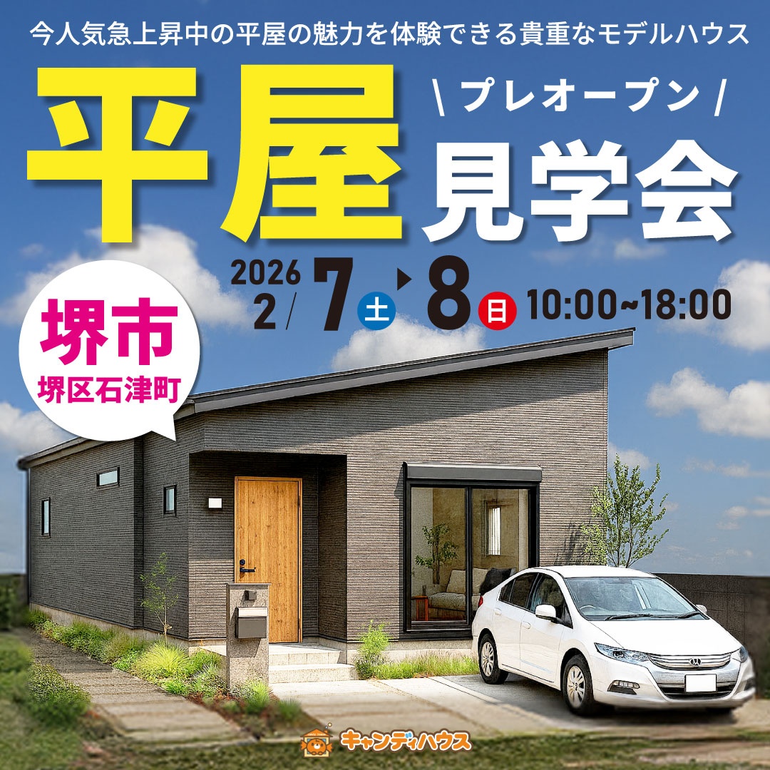 2026年2月7日(土),8日(日) 堺市堺区石津町★平屋モデルハウス プレオープン!!