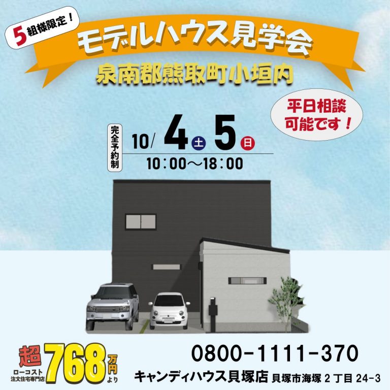 2025年10月4日(土),5日(日) 泉南郡熊取町小垣内☆モデルハウス見学会